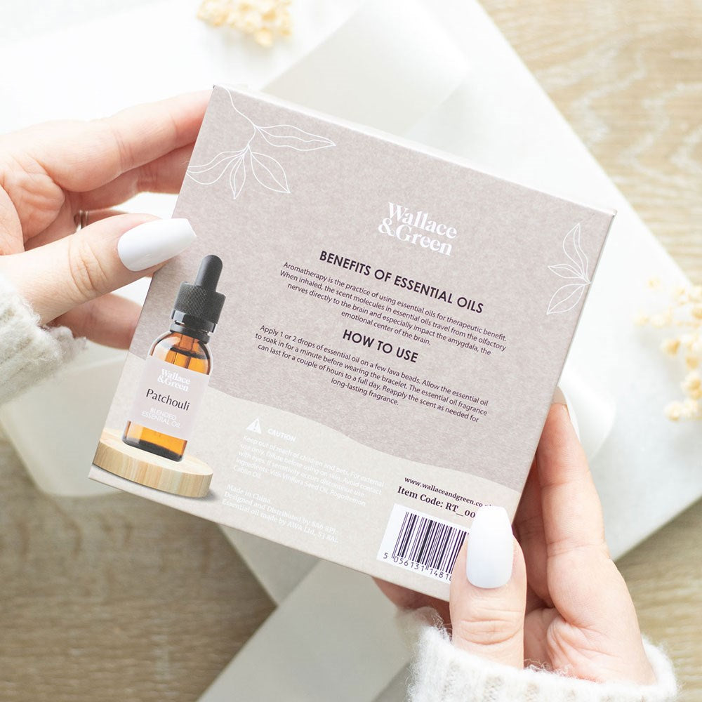 This stress less lava bead bracelet and essential oil gift set uses aromatherapy to enhance the metaphysical healing power of crystals. Crafted with natural howlite and lava beads, the bracelet serves as a diffuser for the included patchouli oil, promoting calmness and clarity with its earthy, grounding elements. The addition of the double spiral charm symbolises balance, making it an ideal gift for anyone seeking tranquillity on the go. Crafted with durable materials and packaged in a luxury gift box, this elasticated bracelet combines beauty and functionality, offering a thoughtful present for various occasions.